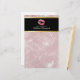 Stationery paper with a background composed with a modern trendy rose gold tropical leaves pattern. Layered over top is a black frame with a gold gradient border, inside are pink glittery lips.