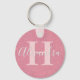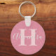 Girly pink faux glitter background. Templates for a name and Your monogram letter. The name is writen in white with a hand lettered style script. The monogram letter in light pink written with a large bold block letter.