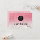 Modern, Sparkilng and elegant with a luxury twist, this gift card is perfect for many businesses whether you are a makeup artist, hair stylist or massage therapist, bridal stores, event planners and more. Featuring a feminine pink sparkling glitter ombre background faded to white marble and bold font this business card design style will connect with the elegant customers you’re looking for.