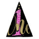 Pink Glitter ONE Black Floral 1st Birthday Party Party Hat
