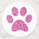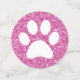 Pink glitter pattern large table confetti (tablefetti) with white animal paw prints for decorating tables at a cat or dog theme birthday party or fundraiser event for a shelter. When you are decorating your party and looking for maximum impact with your puppy or kitten theme birthday for a little girl or boy, or adult who loves animals, they also coordinate with any animal theme tv show or movie theme party.