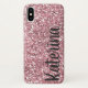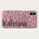 Pink Glitter Personalised with Your Name. Girly, Pretty iPhone X Case.