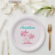 Pink Glitter Retro Flamingo and Palm Trees Paper Plate