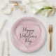 Pink Glitter Romantic Script Valentine's Day Paper Plate