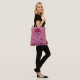 This all over printed tote bag features a pink glittery skull on a pink diamond plate background.