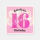 Pink Glitter Sweet 16 Birthday Balloons Script Napkin