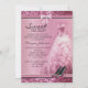 A pink sweet sixteen birthday invitation with gown, glitter, shoes, and tiara