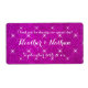 Custom pink purple glitter wedding wine or spring water bottle labels. Personalised elegant waterbottle sticker template with sparkly background texture. Fancy script typography for names of bride and groom and thank you message. Use as classy table decoration or thank you favour for guests at the party. Includes name or monogram plus date of marriage. Faux glittering design with sparkly sparkles and glittery glimmers. Also good for fancy engagement or anniversary gathering. Create your own natural mineral water labels with this shiny DIY template. Customisable background colour. Glamourous look accessories.