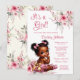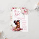 Celebrate your upcoming bundle of joy with this stunning pink and gold-themed baby shower invitation. The design showcases an adorable African American baby girl with charming air puff hair with bows, dressed in the cutest pink and gold ruffle pants and matching booties. The invitation is beautifully accented with soft pink watercolor florals, adding a touch of elegance and sweetness to your special event. This invitation is perfect for a baby shower that exudes warmth, style, and love. The pink and gold colour palette offers a classic yet modern feel, while the delightful baby girl illustration brings a sense of joy and anticipation for your little one’s arrival. Personalise the invitation with your event details to create a unique and memorable keepsake. Ideal for those who appreciate a blend of sophistication and adorable charm, this invitation will set the perfect tone for your baby shower celebration.