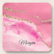 Pink & Gold Agate & Gold Stars, DIY Name Black Coaster