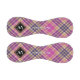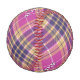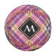 Pink, golden yellow and blue tartan design. Seamless pattern. Custom text and monogram.