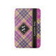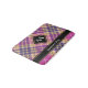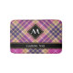 Pink, golden yellow and blue tartan design. Seamless pattern. Custom text and monogram.