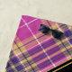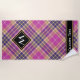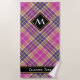 Pink, golden yellow and blue tartan design. Seamless pattern. Custom text and monogram.