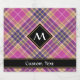 Pink, golden yellow and blue tartan design. Seamless pattern. Custom text and monogram.