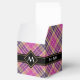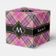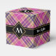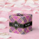 Pink, golden yellow and blue tartan design. Seamless pattern. Custom text and monogram.