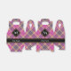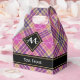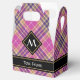 Pink, golden yellow and blue tartan design. Seamless pattern. Custom text and monogram.