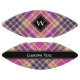 Pink, golden yellow and blue tartan design. Seamless pattern. Custom text and monogram.