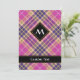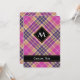 Pink, golden yellow and blue tartan design. Seamless pattern. Custom text and monogram.