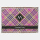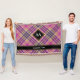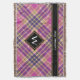 Pink, golden yellow and blue tartan design. Seamless pattern. Custom text and monogram.