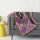 A quality printed throw has its advantages. This is a much finer weave throw than its loopier cousins, and though lighter, it is worth the investment for custom room accessorizing. The back is much prettier than the typical brown, and the fringe on the long sides very vivid, the selvage nicely done. Before photographing, I washed the throw in cold water, delicate, with a thicker woven throw the same size. On tumble dry low, this throw was dry in half the time as the other. This is a very practical quality if you use throws for furniture covers or to wrap up in frequently. The sleekness of the fabric makes it a great layer for accenting or protecting without the feeling of sitting on too much stuff. Perfect for napping or when you feel a light chill coming on. The color printing is beautiful and on this fabric, matched the design and color of my Photoshop image. This is an advantage for blending room fabrics and colors. The fringe on the short sides prints the colors from the design image and therefore varies from the side fringe. I streaked a white fractal line through the plaid pattern to give the illusion of weaving. This printed as crisp as an illusory thread, and put some white in the short side fringe, showing another advantage of print vs loomed- for artistic purposes, line lines, detail, and color integrity can be planned and preserved. My loomed throws have color limitations and more of a needlepoint texture. Print throws reproduce an exact image. The throw felt a little stiff straight out of the package, but this went away in the first delicate wash. Of course I searched the wash water for ink or bleeding and there was none.