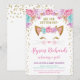 Pink gold and teal floral kitty girl baby shower invitation