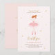 Personalised ballerina theme birthday invitation in pink and gold. Featuring ballerina in pretty pink tutu. Sweet, girly, chic and elegant. Comes with front and back design. Customise with name, age and party details. Ballerina image options available. Perfect for little ballerinas or ballet theme party.
