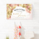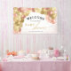 This baby shower banner features an elegant balloon arch in the colours of pink, rose gold and gold. This design is perfect for a baby girl shower.