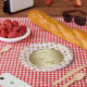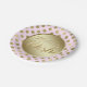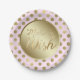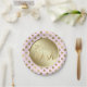 Pink and gold birthday party paper plates with beautiful gold foil dots and elegant gold centre script on a beautiful pink background.