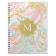Pink Gold Blue Ink Marble Monogrammed Spiral Notebook