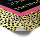 Create a touch of glamour with this elegant 24x24 inch black and gold cheetah print hair and beauty boutique business information sign poster with a gold silhouette of a woman with long wavy hair. Who can resist a pair of trendy hot pink shoes with bows? She is admiring her reflection in a vanity mirror. Personalise this chic animal print design by adding the name of the certified beautician or hair stylist, as well as your boutique hours. Flat printed image, NOT reflective metallic.