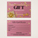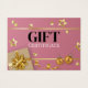 Festive glamourous high quality holiday design featuring luxury gold gift box, bow and ribbon with golden stars and Christmas tree ball on a simple plain pastel rose pink background. This elegant and modern gift certificate is perfect for your small business or to gift friends and family, especially for Christmas holiday time.