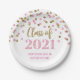 Pink Gold Confetti Graduation 2021 Paper Plate