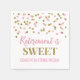 Retirement is sweet napkins with light pink and gold glitter confetti pattern.