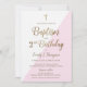 Pink Gold Cross Baptism 2nd Birthday Invitation