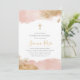 A pretty pink watercolor and faux gold glitter baptism invitation. The perfect design for your little girl's christening or baptism.