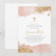 Pink Gold Cross Girls Baptism Christening Invitation