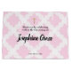 Presentation really is everything. This adorable Christening gift bag is perfect for the guests. Complete with a circle pattern, a faux gold cross, pink and the added touch of personalisation for your baby girl's name and event date. Sweet and modern design.