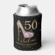 Personalise these modern chic pink and gold diamond sparkle high heels Fifty and Fabulous 50th birthday can coolers with your own wording and party details easily and quickly. Simply click the "Edit Using Design Tool" button to modify some of the text, wording, font style, font size, and font colour. For a seamless and coordinated look, explore our range of matching items available in-store. (c) The Happy Cat Studio