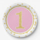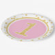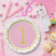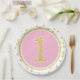 A pink and gold first birthday paper plate design. Featuring a chic pink circle with a faux gold number 1 and confetti. Perfect for a girly 1st birthday party. Designs are flat printed graphics - NOT ACTUAL GLITTER.
