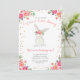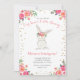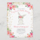 Pink gold first birthday bunny invitation with cute bunny, pink flowers, and gold confetti. Perfect for your birthday party this Easter!