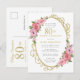 Pink Gold Floral 80th Birthday Party Invitation Postcard