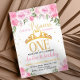Pink Gold Floral Crown Princess 1st Birthday Invitation