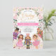 Whimsical nutcracker-themed birthday invitation in feminine pink and gold.