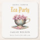 Pink Gold Floral Teacup Bridal Shower Tea Party Square Paper Coaster