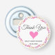 Cute pink and gold floral wreath "thank you" bottle opener for a baby shower. This pretty bottle opener has elegant dark grey text, a pink heart in the centre, and a pink and gold floral wreath border. Personalise by adding your own text, name and baby shower date. You can even change the text colour and font style using the customise option.