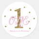 Pink & Gold Girls ONE 1st Birthday Party Favour Classic Round Sticker