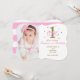 Pink & Gold Girls ONE 1st Birthday Party Photo Invitation