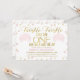 Sweet twinkle twinkle little star themed first birthday invitation for a baby girl featuring two pink clouds, various watercolor stars in pink and gold, some faux gold dots and text. This template features a star pattern on the back. This star themed first birthday invitation is ideal for a girl's first birthday.