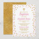Pink & Gold Glitter Confetti Baptism Invitation