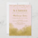 An elegant pink and gold birthday invitation featuring gold confetti dust at the top and gold bling at the bottom.
